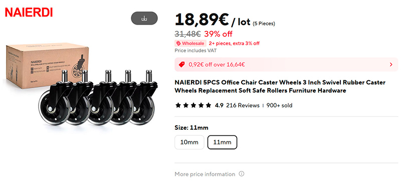 Три года они счастливо перемещают мою тушку туда-сюда, и с ними я прям горя не знаю: с такими колесиками кресло перемещается проще и быстрее, шума при этом вообще никакого нет, и пыль такие колесики собирают намного меньше!
