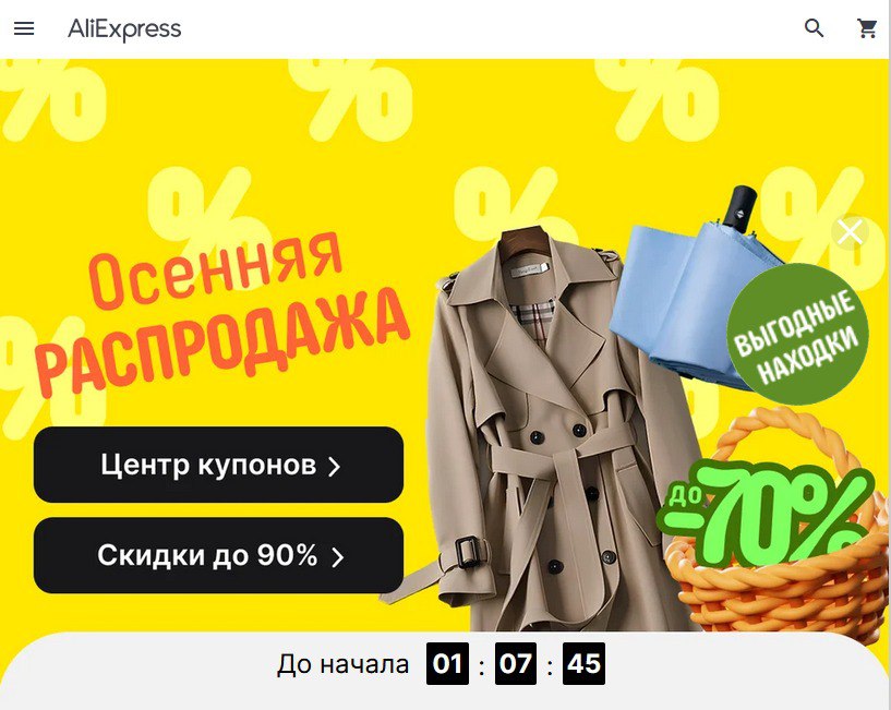 Сегодня стартовала «Осенняя распродажа» на AliExpress и продлится по 6 сентября 09:59 (МСК)