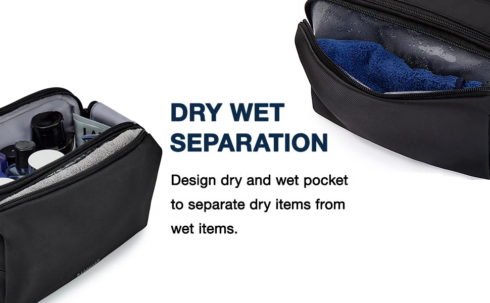 Несессер BAGSMART. 2 размера, 4 цвета (чёрный, серый, синий, розовый) - так что вполне себе унисекс. Основное отделение удобно открывается двойной молнией и хорошо организовано внутри: по бокам в нём сетки и резинки, что позволяет разместить вертикально много флаконов и тюбиков, при этом ничего не путается, всё на виду, легко найти нужное. Интересная фишка: специальный влагозащищённый карман для влажных предметов - салфеток, мокрого белья и т. п. (см. картинку).