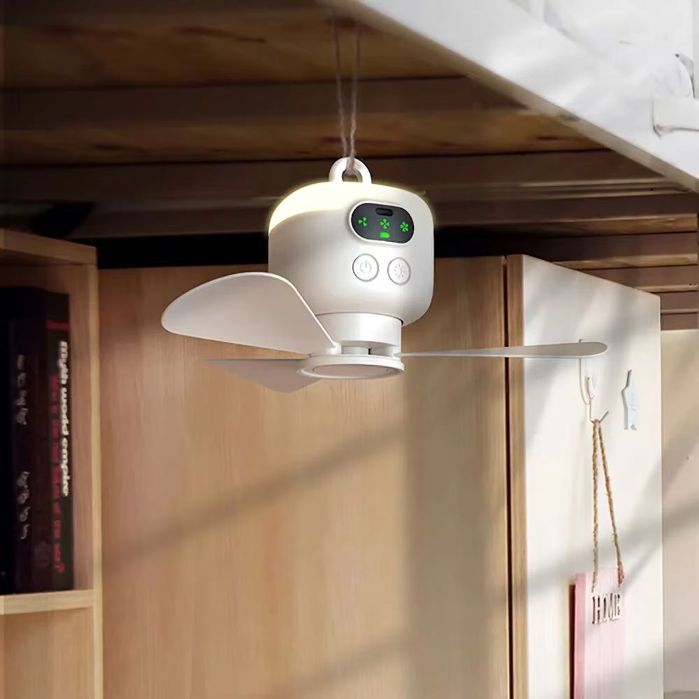 Потолочная лампа-вентилятор. Работает от аккумулятора 5000 или 8000 мА/ч, заряжается от usb. Есть пульт управления, расстояние до 3м. Есть таймер. Есть регулировка силы обдува и яркости света. Работает тихо. Сверху удобный крюк для крепления. Разбирается, для удобства транспортировки.