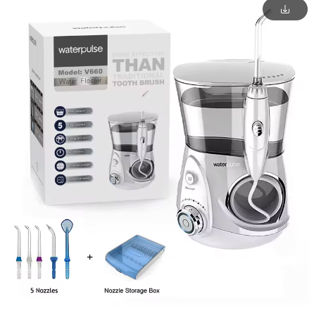 Обязательный гаджет для гигиены полости рта. Тонкая и сильная струя воды вымывает остатки еды, налёт из межзубного пространства, массажирует дёсны.