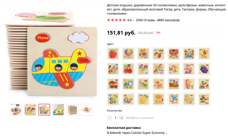 Не забываем о самых маленьких - деревянные пазлы для детишек 3-5 лет. 28 вариантов. Отзывы очень хорошие.