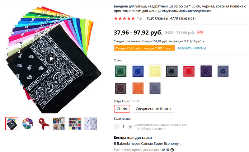 Разноцветные банданы различных цветов. Я себе зеленую и черную заказал - иногда банданы использую. В нынешних сложных временах она еще спокойно превращается в маску.