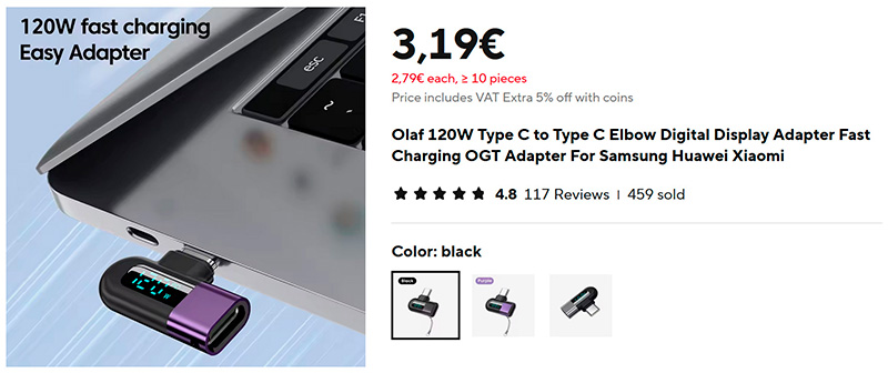 Полезная штука - угловой адаптер для зарядки под порт Type-C (ссылка для РФ) с дисплеем, показывающим мощность зарядки. В определенных случаях бывает сильно удобнее заряжать смартфон через такой адаптер, особенно когда вы телефон при зарядке одновременно используете, также такой адаптер может быть удобным при зарядке ноутбука. Чтобы не покупать специальный кабель с угловой зарядной головкой, проще взять этот копеечный адаптер.