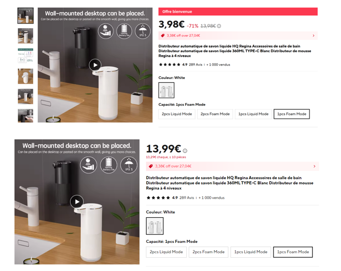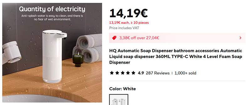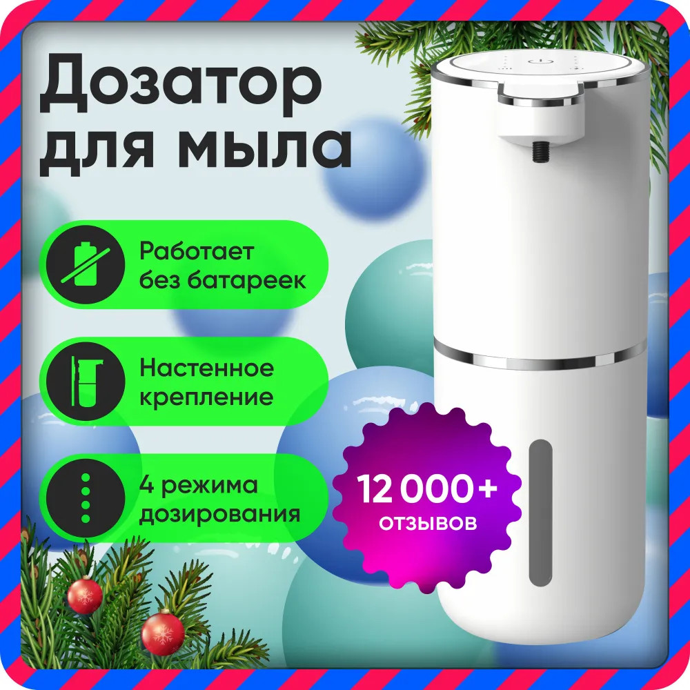 Автоматический дозатор жидкого мыла (ссылка для РФ), который также может крепиться к стене. 350 мл, зарядка по USB. Есть версия без вспенивания и со вспениванием.
