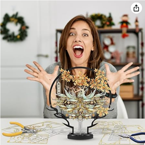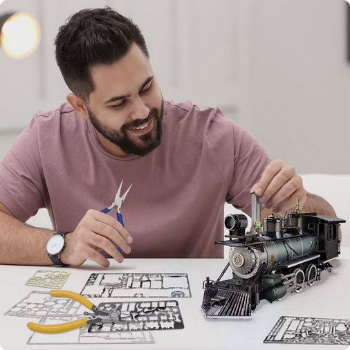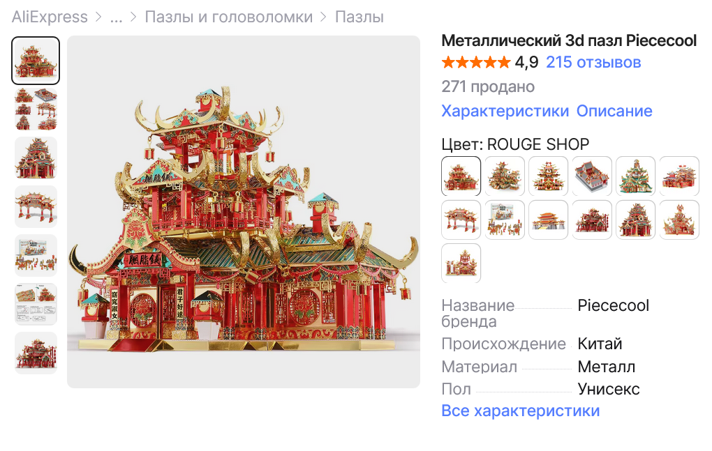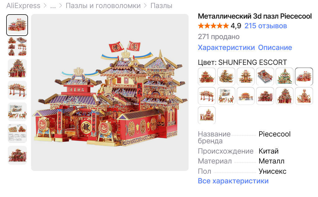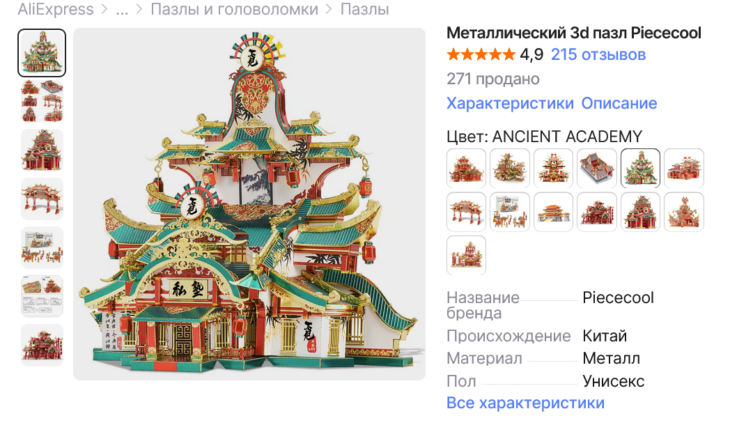 Карету мне, карету! 😄 Металлический 3D-конструктор (ссылка для РФ). Поставляется в виде тонких металлических листов с вырубкой. Детали выкусываются из листов и скрепляются без клея с помощью язычков, которые нужно вставить в паз и загнуть. Инструменты для сборки можно приобрести в том же магазине.
