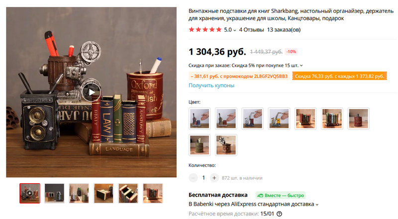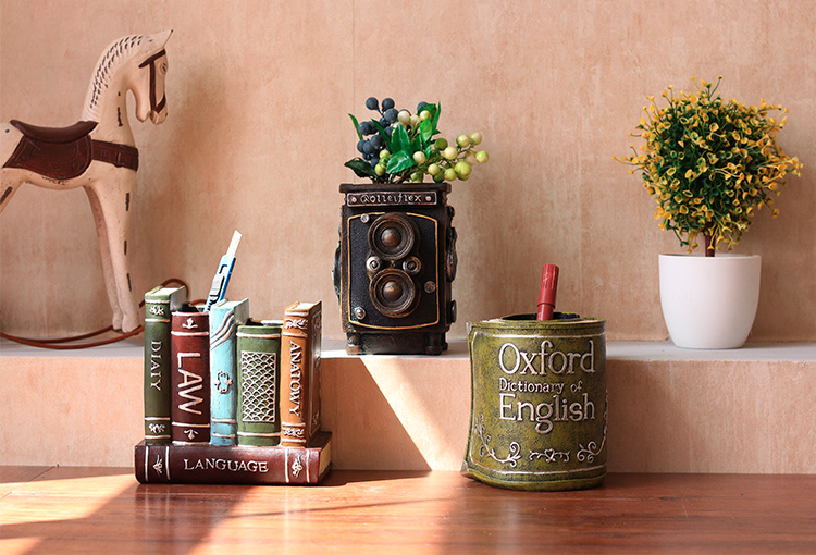 Любопытные винтажные подставки под всякие ручки, карандаши и прочую мелочёвку. Я такое очень люблю, несмотря на то что я - человек очень "цифровой". Но ручку и карандаш на столе все равно держать нужно, и я себе заказал подставочку в виде вот этих старинных книжек - она очень стильная.