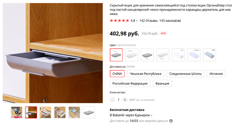 Давно приглядываюсь к этим ящичкам под стол. Но, блин, 400-500 рублей за кусок пластика на липучке. Просто это типа хозмелочевки, она обычно 100-200 рублей должна стоить ))