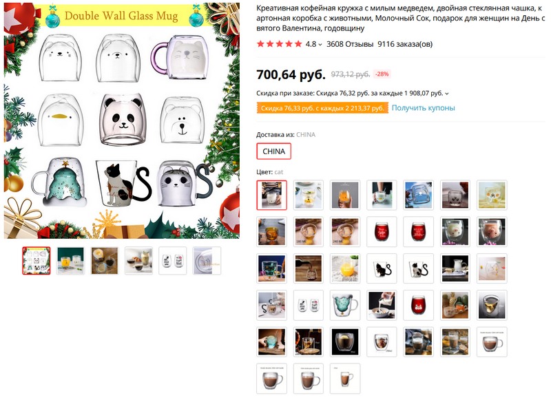 Куча всяких прикольных и полезных кружек и стаканов. Дарить, для себя, для розыгрышей и так далее. Часть прикольных кружек и стаканов - двойные, в них горячие напитки долго не остывают (но осторожнее, не обожгитесь). Также есть обычные кофейные кружки с двойными стенками разных размеров.