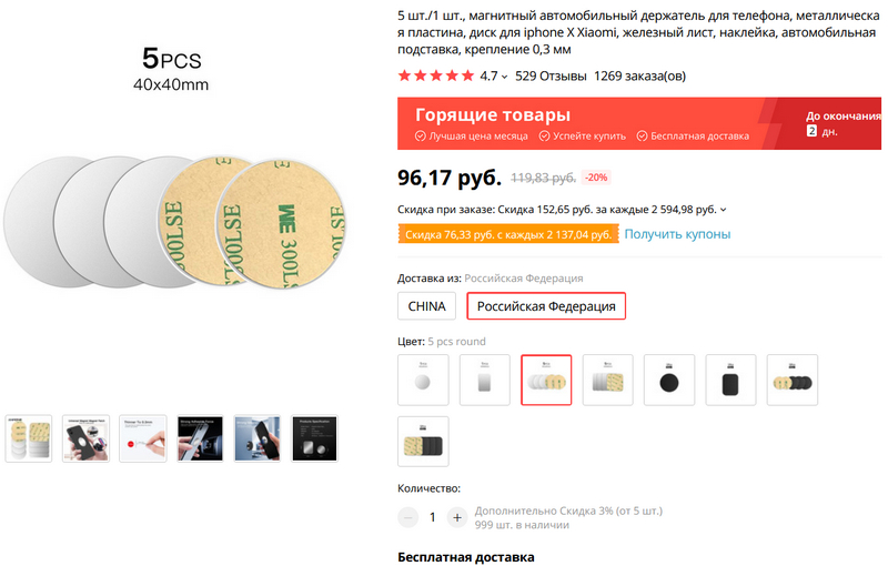 Для тех, кто использует магнитный держатель для смартфона в машине (это, на мой взгляд, наиболее удобный вариант), - металлические пластины с клейкой лентой 3М для чехла: круглые, прямоугольные, двух цветов, можно заказать парой наборов (пять круглых, пять прямоугольных), есть доставка с российского склада. Это я себе как раз искал, у меня старый набор закончился.