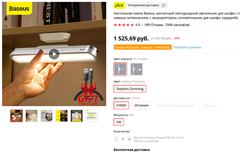 Вот это я себе искал, нашел, причем устройство оказалось еще более продвинутое, чем я ожидал, - магнитный светодиодный светильник Baseus.