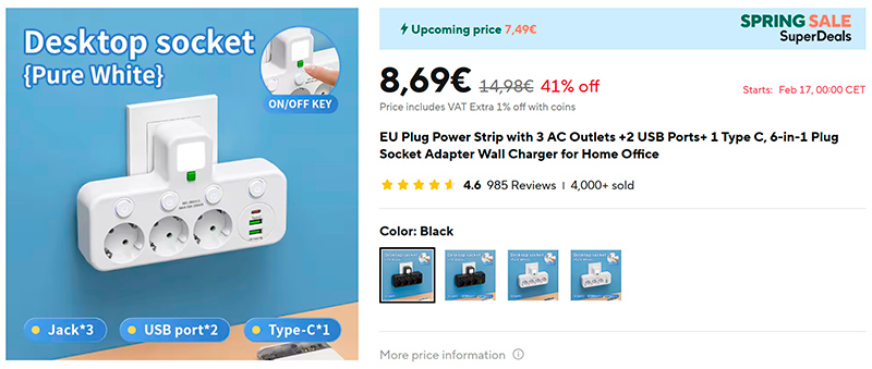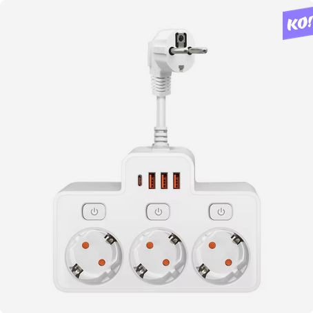 Удобный тройник (ссылка для РФ) с тремя высокоскоростными USB-портами. Есть общий выключатель для всего устройства, есть выключатели для каждой конкретной розетки и для блока USB-портов. Также есть версия под четыре розетки без портов USB.
