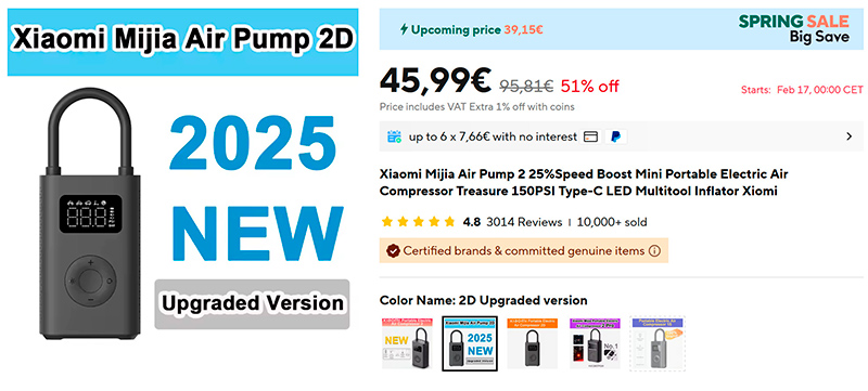 Вышла новая версия беспроводного насоса Xiaomi Mijia Air Pump 2 (версия для РФ), которым я пользуюсь уже года четыре. Обещают более высокую скорость накачки. Хороший насос, удобный. В комплект входят соответствующие переходники: машина, велосипед, мяч. Наверное, закажу новую версию, а то у меня этот насос такой старый, что у него зарядка через microUSB - раздражает. И аккумулятор уже явно подсел за столько лет: я пользовался этим насосом немало - велосипеды, автомобильные шины, мячи.