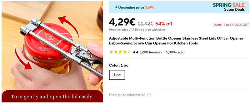 Всем так или иначе приходилось сталкиваться с тем, что откручивающаяся крышка банки с каким-то продуктом ни черта не открывается. В этом случае можно, конечно, ее разблокировать открывалкой для бутылок, но при этом крышка может повредиться, а это нежелательно. Да и открывалка далеко не всегда под рукой. У китайцев есть вот такой инструмент "4 в 1" (ссылка для РФ), предназначенный для легкого открытия крышек банок различных размеров. Более 10 тысяч продаж, более 4 тысяч отзывов. Народ пишет, что эта штука полностью изменила их жизнь. Раньше люди были подвержены приступам гнева и паники, когда никак не могли справиться с крышкой банки, а теперь они находятся в полной душевной гармонии, потому что эта штука откроет любую банку. Плюс - ею очень удобно чесать спину.
