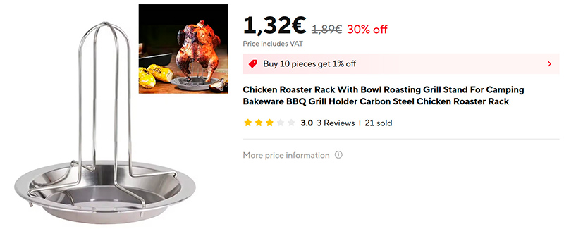 Очень простенькая, дешевая, но вполне эффективная штука для запекания курицы в духовке (ссылка для РФ). Птица равномерно прожаривается, жир стекает в небольшую емкость, которую намного легче мыть, чем целый противень - в общем, сплошные плюсы.