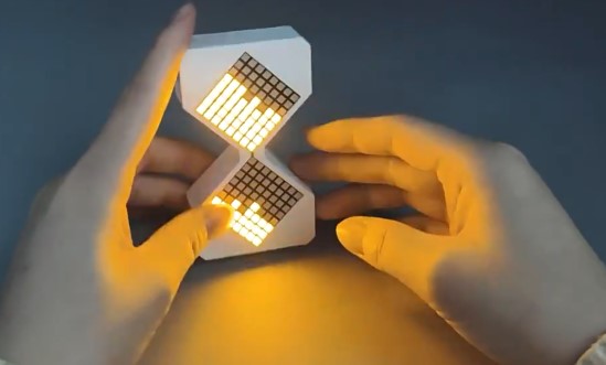 При повороте в режиме клепсидры цифровые песчинки пересыпаются в зависимосчти от угла поворота.