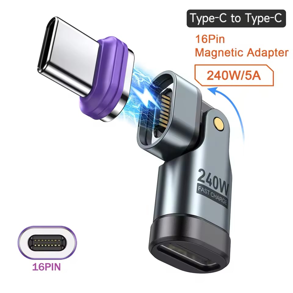 Превращает любой обычный USB-C кабель в магнитный и предотвращает расшатывание разъёмов на ваших электронных устройствах. Мощность зарядки до 240 W, скорость передачи данных до 480 Мбит/с (USB 2.0).