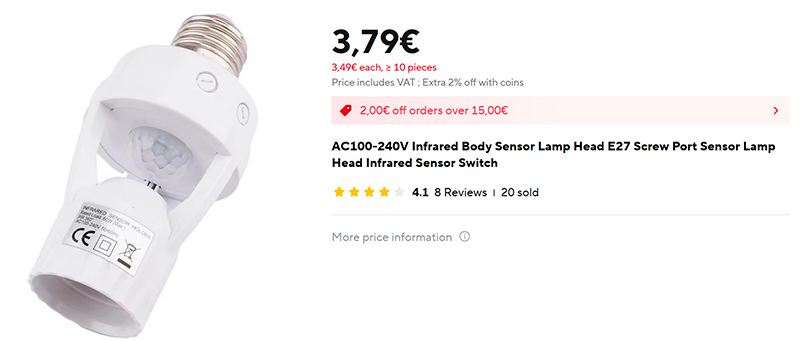 Вот такую штуку я себе искал для коридора с лестницей в кладовку и гараж. У меня провалилась идея освещать лестницу светильниками от Xiaomi с датчиком движения - просто потому, что они не рассчитаны на крепление на побеленную стену. Оказалось, что есть вот такая удобная штука - цоколь с инфракрасным датчиком движения (ссылка для РФ) под стандартную лампу E27. Стоит две копейки, туда вкручивается любая лампа нужных параметров, причем еще и в цоколе регулируется уровень освещения для срабатывания и яркость. Вкручу в коридоре три таких штуки, после чего свет руками можно будет не включать.