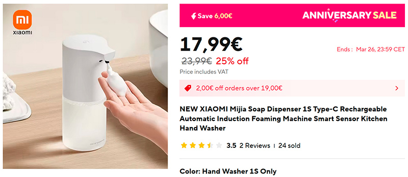 Давненько у нас не было диспенсеров для мыла - вот новый Xiaomi Mijia Soap Dispenser 1S (ссылка для РФ). Зарядка через USB, вспенивает (сильно экономит жидкое мыло).