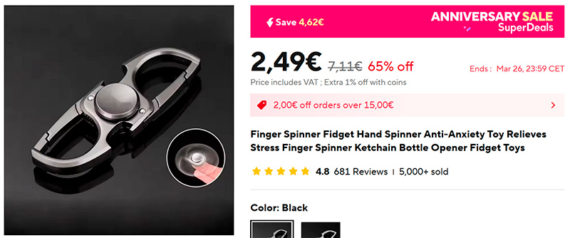 Я вообще большой любитель что-то крутить в руках. А тут и спиннер (ссылка для РФ), и брелок для ключей, и открывалка. Ну и как я мог пройти мимо?