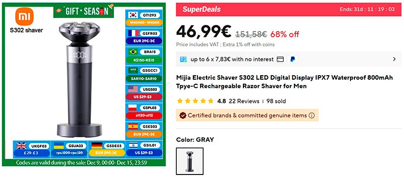 Новая модель электробритвы среднего класса Xiaomi Mijia S302 (ссылка для РФ). Я сейчас пользуюсь их топовой электробритвой Xiaomi Mijia S700 (ссылка для РФ), но у меня была S300, которая мне нравилась, но там была проблема с зарядным портом. У модели S302 вроде бы эту проблему исправили, а стоит она - в два раза меньше, чем S700.