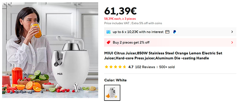 Для любителей свежевыжатых соков - удобная электрическая соковыжималка MIUI (ссылка для РФ). Легко разбирается и моется.