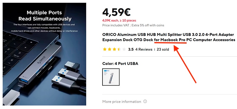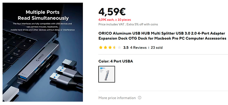 USB-хаб Orico из серии "прямотык" (ссылка для РФ), то есть безо всякого кабеля втыкается прямо в порт. На четыре порта USB-A. Мне такое для ноутбука больше всего подходит. Да и для ПК пригодится.