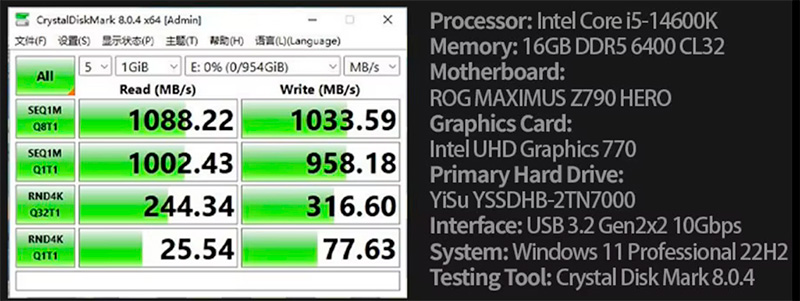 Производитель приводит измерение скорости по CrystalDiskMark 8.