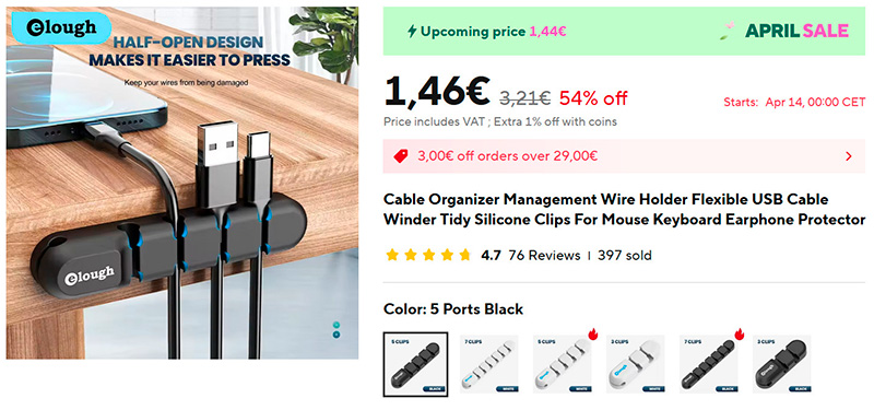 На мой взгляд, это самый удобный вид органайзеров для кабелей на столе (ссылка для РФ). Их можно крепить на стол, но еще лучше - на боковую грань, и кабели оттуда можно просто вытягивать при необходимости. В итоге стол свободный, кабели на столе не болтаются. Два цвета, на 3, 5 и 7 кабелей.