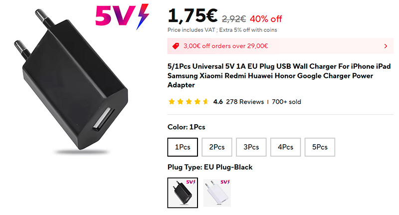 Иногда бывает нужен совсем простенький и дешевый адаптер на 5 Вт - электробритву зарядить, часы подключить, наушники для зарядки и так далее. И чтобы не городить огород с дорогими адаптерами на несколько портов, проще купить пару копеечных адаптеров (ссылка для РФ). Я в свое время их купил штук пять, о чем совсем не пожалел.