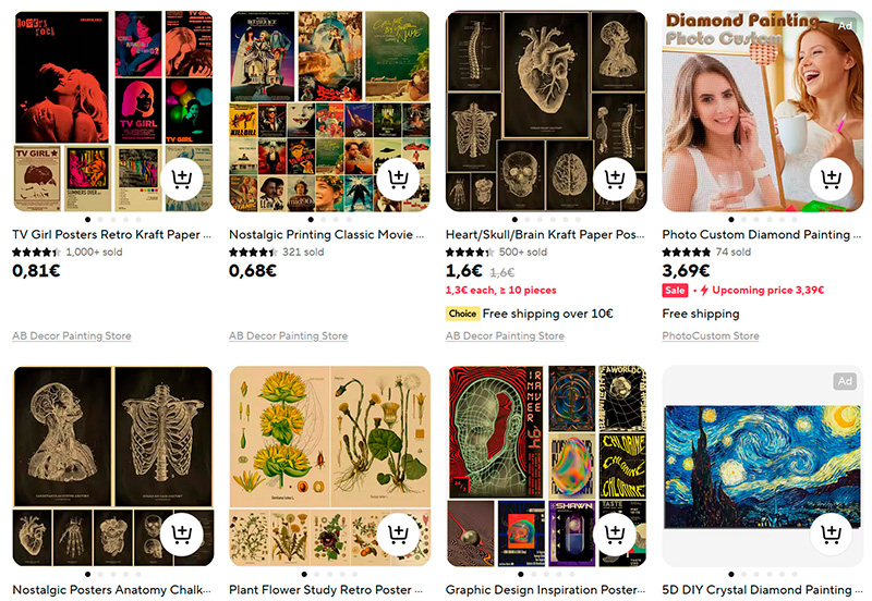 Обнаружил магазин на Ali с огромным выбором самых разнообразных ретро-постеров (ссылка для РФ): фильмы, растения, картины известных художников, анатомия, астрономия, оружие, советский винтаж, абстракции и так далее.