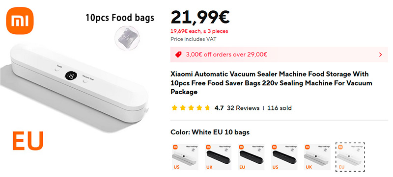 Вакууматоры есть очень разные: от дешевых, стоимостью в пару десятков евро, до дорогущих, стоимостью более 100 евро. Вот неплохой вариант дешевого вакууматора (ссылка для РФ).