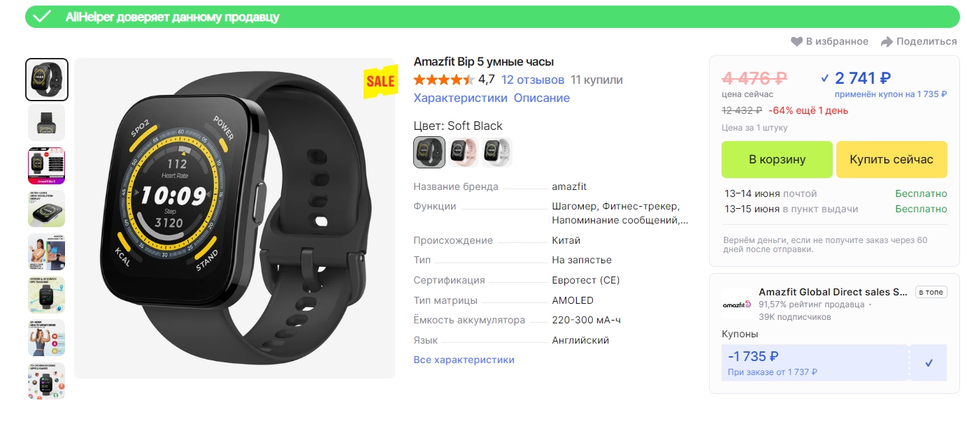 Цена: 2 741 руб., купон на 1735 руб. на странице товара.