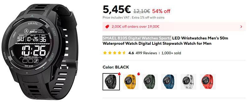Водонепроницаемые цифровые спортивные часы SMAEL 8105 (ссылка для РФ).