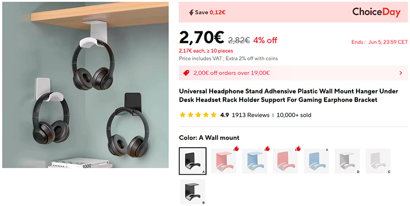 Пластиковые держатели для наушников (ссылка для РФ). Крепятся на двухсторонний скотч, разные цвета и два вида: для крепления на вертикальную и на горизонтальную поверхности.