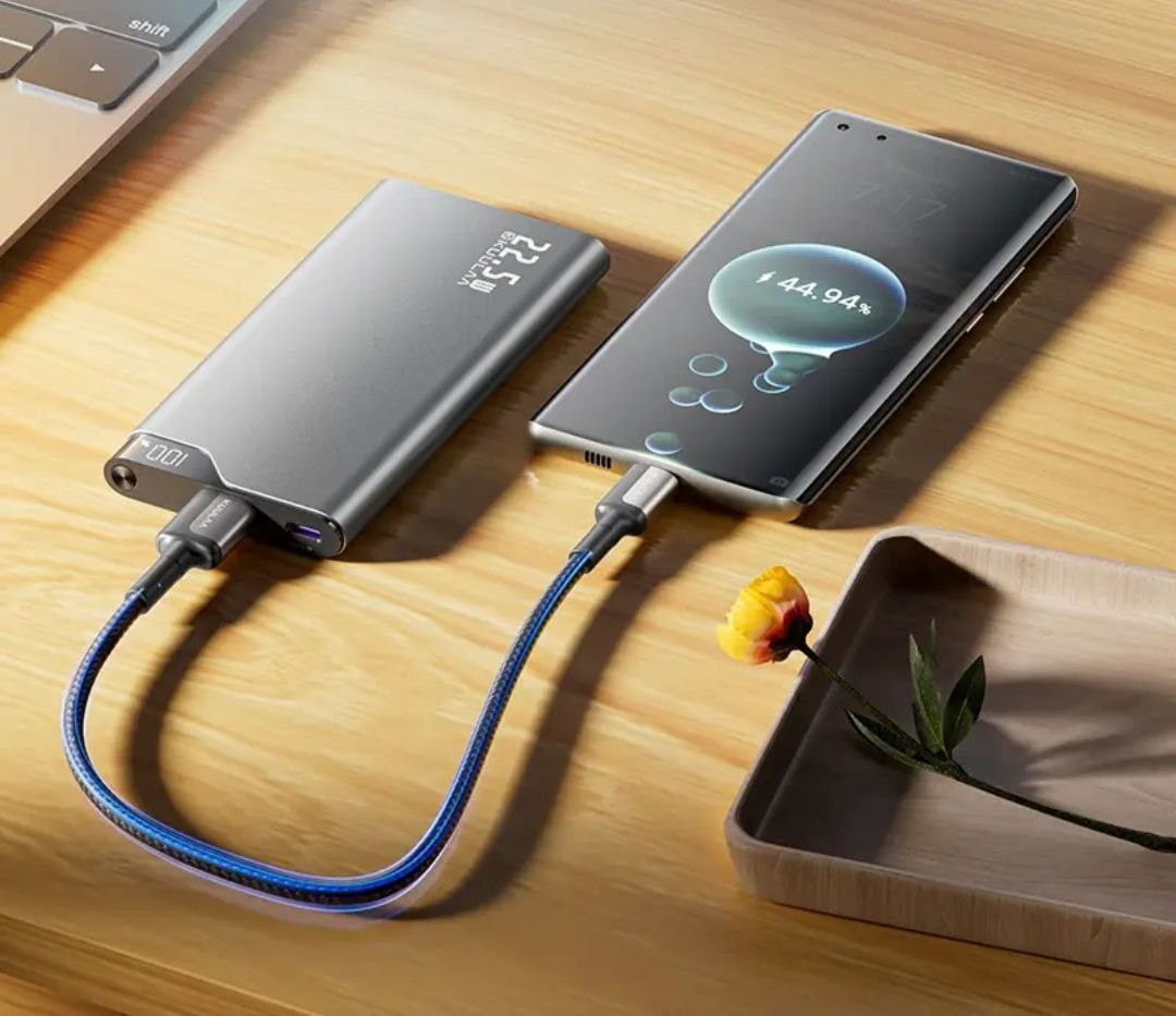 Аккумулятор получил емкость 10000 мАч, поддерживает быструю зарядку 22,5 Вт, имеет информационный LED дисплей, порты USB и Type-C, тонкий металлический корпус.