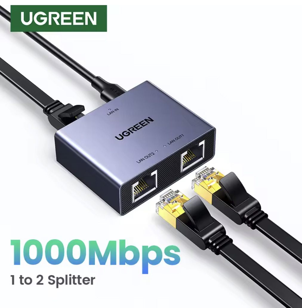 Есть еще вариант в 2 раза дешевле UGREEN RJ45 Splitter, но он без питания через Type-C и 2 выхода одновременно не работают, или один или другой.