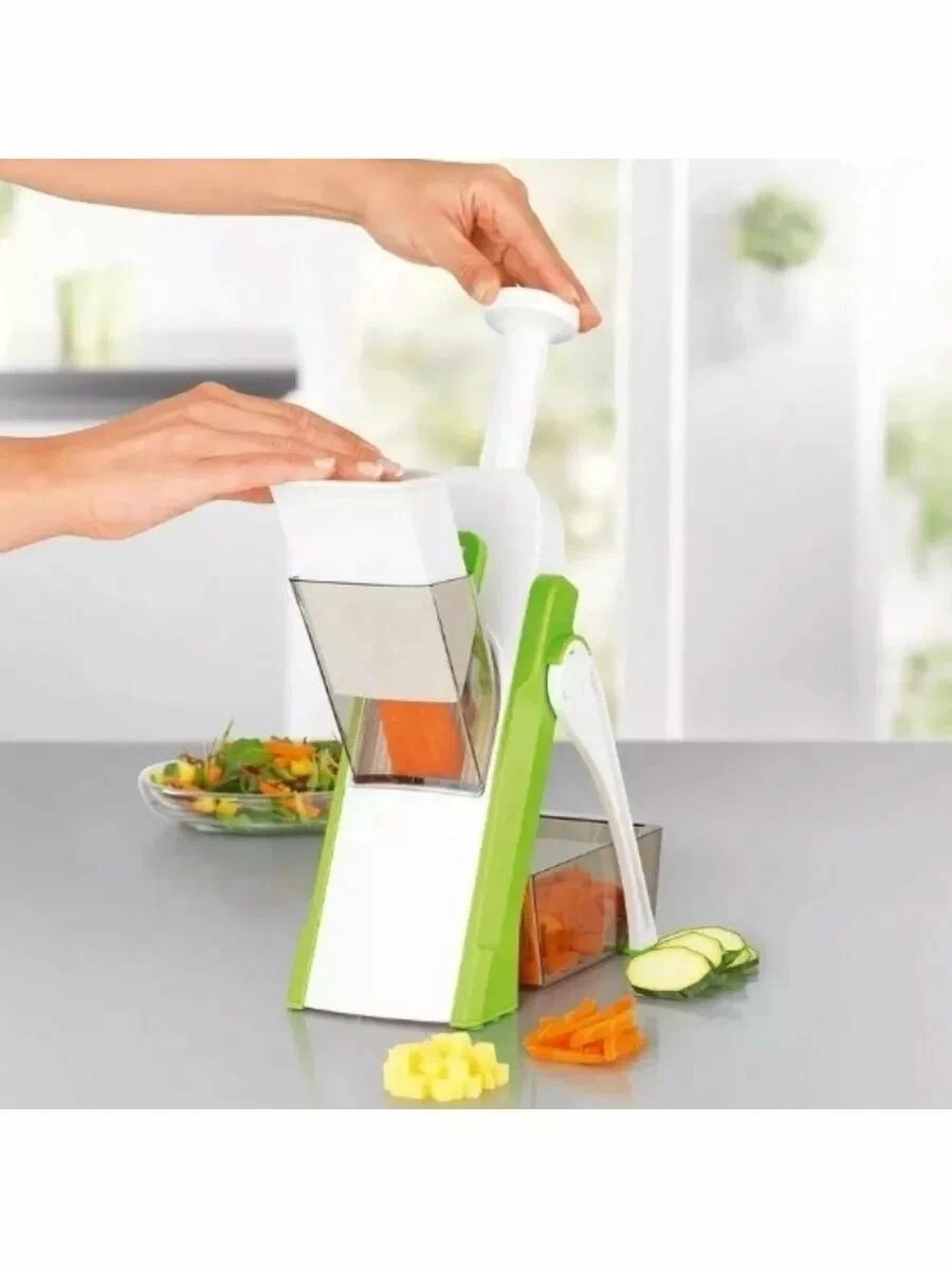 При помощи слайсера можно нарезать овощи и фрукты кубиками, кружочками, соломкой и брусками разной длины. Изготовлен из прочного пластика. На корпусе мультислайсера имеются два рычажка, для выбора типа измельчения и регулировки толщины. Благодаря надежным присоскам не перемещается по рабочей поверхности. После использования рычаг можно заблокировать, чтобы избежать случайного нажатия. Система пружинного механизма обеспечивает плавную и легкую нарезку.
