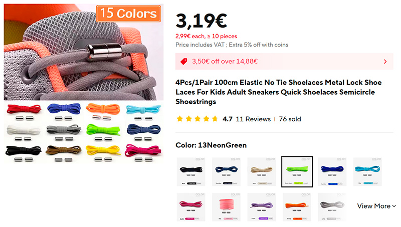 Почему-то на российском Озоне подобные шнурки стоят 100-150 руб с местного склада и 50-80 руб с доставкой из Китая.