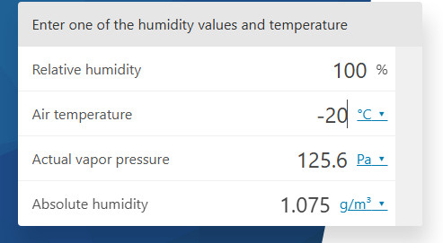 В квартире 18 градусов Цельсия. Атмосферное давление такое же. Тогда в этом же калькуляторе при том же значении абсолютной влажности 0.012 кг/м3 получаем относительную влажность 80%. Ну, такое себе...