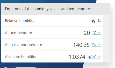 Температура на улице 16 градусов Цельсия. Относительная влажность после двух недель дождей - 90%. Давление - да бог с ним, пусть будет норма - 760 мм рт. ст., в дожди обычно падает, но оно будет одинаковым и в доме и на улице, так что на результат сильно влиять не должно. По первому попавшемуся калькулятору в этом случае абсолютная влажность воздуха 0.012 кг/м3. Ок, поехали дальше.