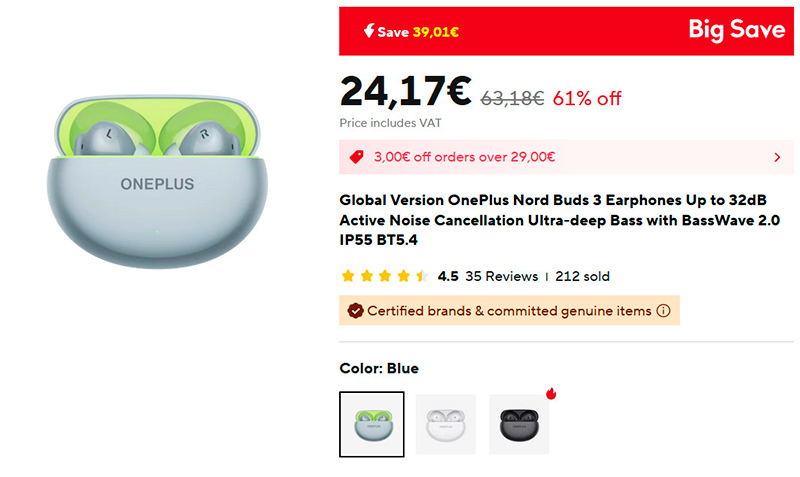 Заказал себе OnePlus Nord Buds 3 - получилось $35.