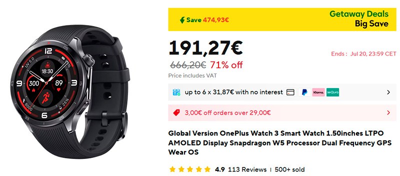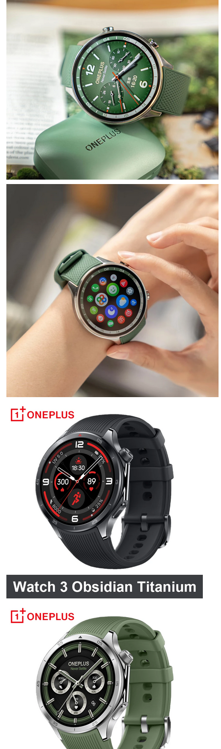 Умные часы OnePlus Watch 3 (глобальная версия). Работают на Wear OS (также здесь установлена система RTOS со своим процессороом для экономного режима), дисплей 1,5" с разрешением 466*466 на матрице LTPO AMOLED с яркостью 2200 нит. Сапфировое стекло, материалы корпуса - сталь, безель изготовлен из титана. Автономность - до 3 дней в самом активном режиме с AOD, до 5 дней в стандартном режиме, до 16 дней в энергосберегающем режиме. Полная зарядка - 48 минут.