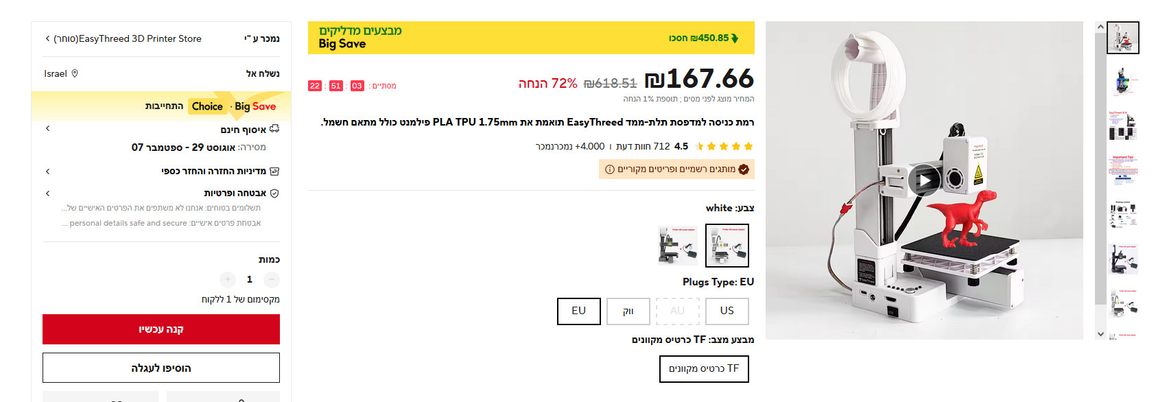 Для начинающих в 3d и для маленьких моделей (10х10х10 см). Тихий и легкий. Управление одной кнопкой. Поддерживает только файлы .stl. Советы для начинающих и приложение для разработки моделей от производителя EasyThreed. В нем так же есть библиотека готовых моделей. Более 4 000 продаж.