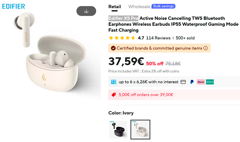 Недорогие наушники Edifier X5 Pro в стиле AirPods с активным шумодавом. Поддерживают Bluetooth 6.0, управляются через приложение, влагозащищенность IP55, мультипоинт, режим прозрачности. Автономность до 16 часов (11 часов с шумодавом), с подзарядкой от кейса - 48 часов. 15 минут зарядки дают 5 часов прослушивания.