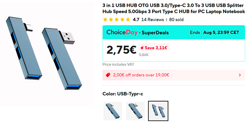 Комплект из двух удобных хабов под USB-A и Type-C на три порта USB-A. Их можно купить и по отдельности, но остались последние экземпляры.