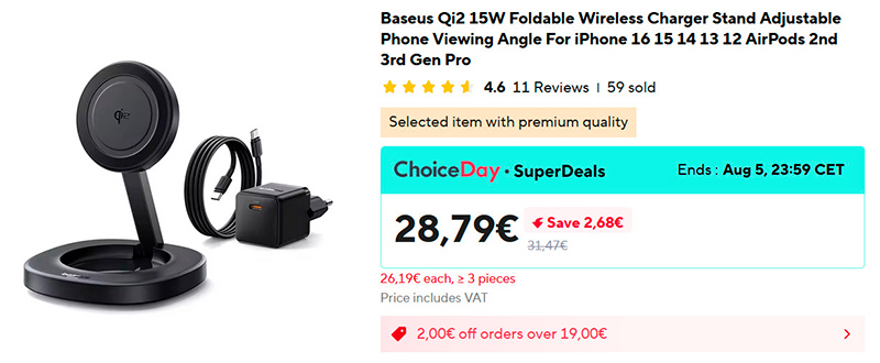 Если у вас смартфон (чехол смартфона) с магнитом MagSafe, то вот для него удобная подставка с магнитной головкой, которая может поворачиваться на 90 градусов. А если у смартфона еще и есть беспроводная зарядка, то подставку можно подключить к зарядному адаптеру (его можно взять в комплекте), и это будет и подставка, и зарядка на 15 Вт. Я практически такой же пользуюсь, это очень удобно.