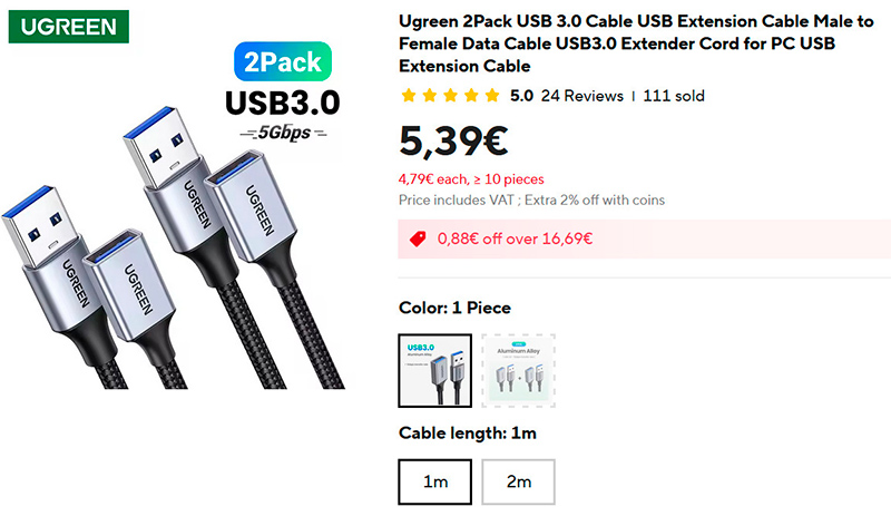 Удлинители для USB-порта - длиной 1 или 2 метра. У них могут разные применения, но чаще всего такие удлинители применяют в телевизорах, у которых порты USB для подключения флешек или внешних дисков расположены очень неудобно.