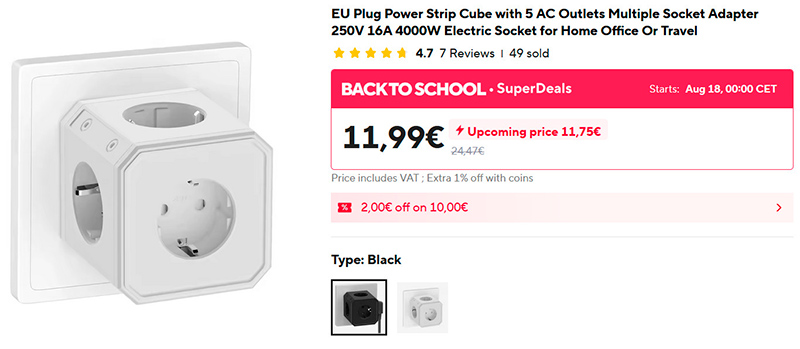 Нам перестало хватать тройника на кухне - добавился еще один бытовой прибор, - а удлинитель там использовать не хотелось. Стал искать другой тройник, но чтобы был не тройник, а четверник, а еще лучше - пятерник. Нашел вот такой. Европейская вилка, одну розетку превращает в пять. И никаких тебе удлинителей. Два варианта цветов - белый и черный.