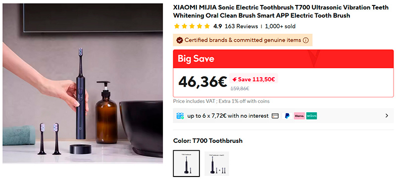 Электрическая зубная щетка Xiaomi Mijia Sonic T700. Что пишут о характеристиках: двойное количество ворса, сверхмягкие щетинки из нейлона Dupont уменьшают раздражение десен, настраиваемый режим чистки, светодиодный дисплей, бесступенчатая регулировка мощности, точное управление силой чистки, три режима работы. Есть комплектация с дополнительными насадками.